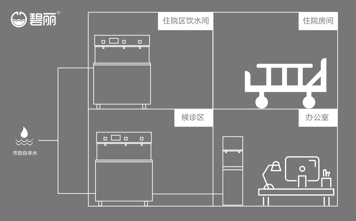 醫(yī)院內(nèi)人群多樣,有病人、有陪護(hù)的親屬、有探病的朋友,還有大量的醫(yī)護(hù)人員及醫(yī)生,日常的飲水需...